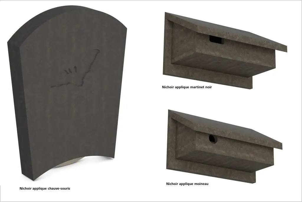 Avec notre partenaire Sto, nous sommes fiers de vous proposer une gamme de nichoirs discrets et faciles à installer sur les façades de vos logements contribuant ainsi à lutter contre le déclin de la biodiversité. Chaque nichoir StoElement Fauna est fabriqué à base de béton de bois, matériau sain et écologique. Ces nichoirs s’intégreront parfaitement à la structure de votre bâtiment. Nous vous proposons deux types de nichoirs parmi six modèles. Chaque modèle de nid possède une ouverture idéale correspondant aux besoins spécifiques de trois différentes espèces à protéger : le moineau, le martinet noir et la chauve-souris.